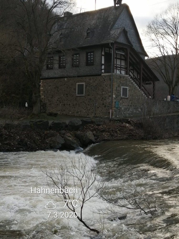 Das Wetter war bewölkt, Sonne war keine da, aber es regnete nicht mehr. Der Start erfolgt am Rathaus am Hahnenbach, der in diesem Jahr ziemlich gut gefüllt und etwas reißend erschien.
