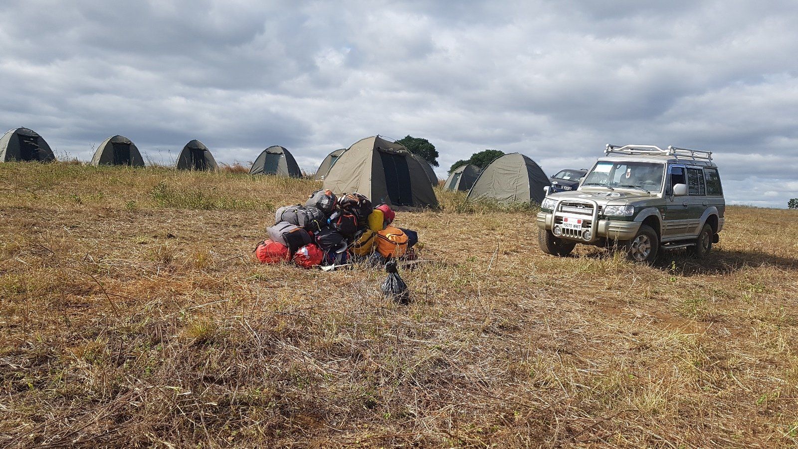 Ständiger Begleiter ist ein steter starker Wind der die 30° beim Laufen mildert (aber anstrengend gegen den Wind zu laufen) und die Zelte wackeln lassen. Aber das 35köpfige Team weiß damit umzugehen und so stehen die Zelte ( übrigens Safarizelte mit Stehhöhe ) bombenfest.