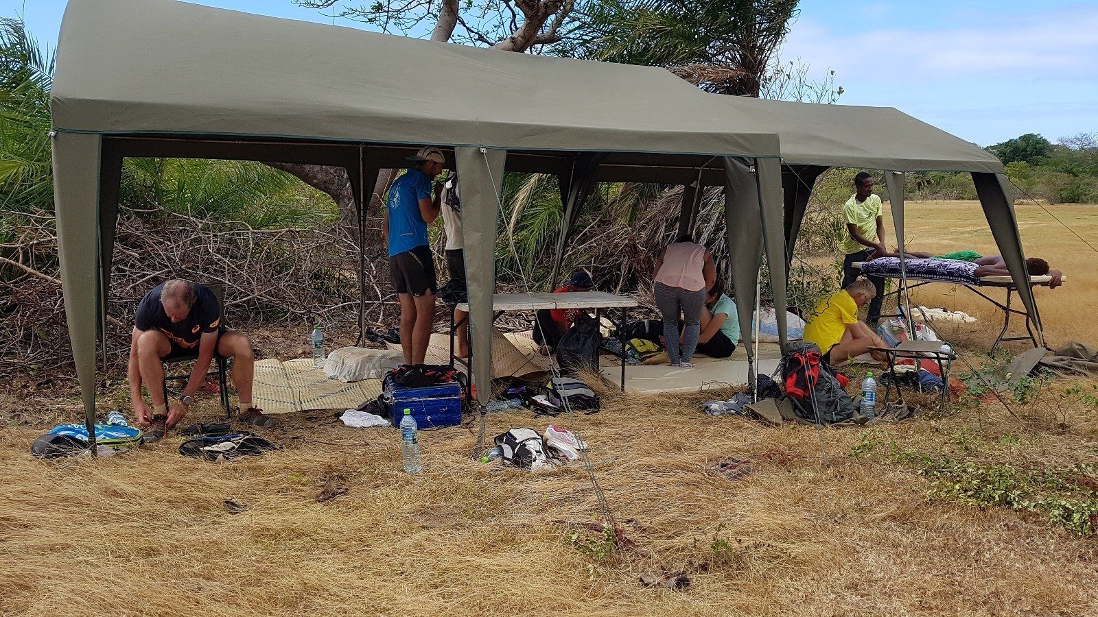 Whooow!!! Ein „Luxuscamp“ mit Dusche, Toiletten und Vollverpflegung sind von dem erfahrenem Team um Sonja und Patrice aufgebaut worden. Kein Wunder, wenn man schon mit "Four Desserts" und "Tour de Gauloises" hunderte von Läufern durch die Insel schleuste weiß man wo´s langgeht. Aber so groß solls nicht mehr sein und etwas mehr für die Einheimischen und Naturliebhaber bringen. Also weg vom Megarennevent hin zum persönlichen und das konnten wir 11 Ausländer aus USA, Schweden, Belgien, Schweiz und ReUnion in vollen Zügen genießen.