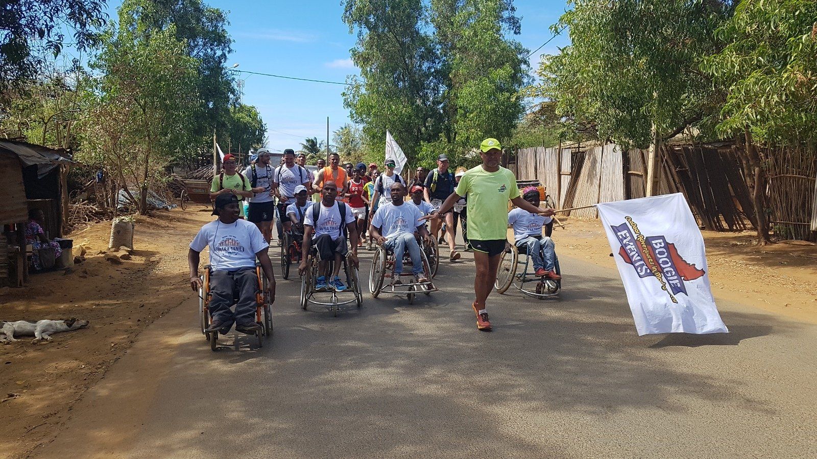 Die letzte Etappe brachte uns erneut nach DiagoSuarez wo wir als Abschluss einen Solidaritäts lauf mit Poliogeschädigten (die Lähmung ist leider hier immer noch vohanden) im Rollstuhl 4Km durch die Stadt begleiteten. Schön war es für uns zu erleben, mit welcher Freude und Begeisterung die Rollstuhlfahrer mit uns Läufer durch die Stadt fuhren. Es wurde laut gesungen und immer wieder geklatscht! Wir wurden ca 500m vor dem Ziel von den Rollstuhlfahrer abgeholt und ins Ziel mit Anfeuerung begleitet.