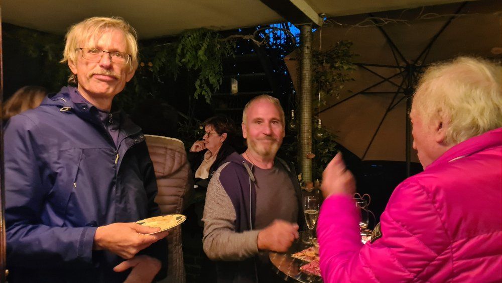 Durch das schlechte Wetter ist ein Umdrunk im Wald nicht möglich und wie schon in anderen Jahren haben Karin und Friedrich uns in ihre herbstliche Gartenlaube eingeladen.